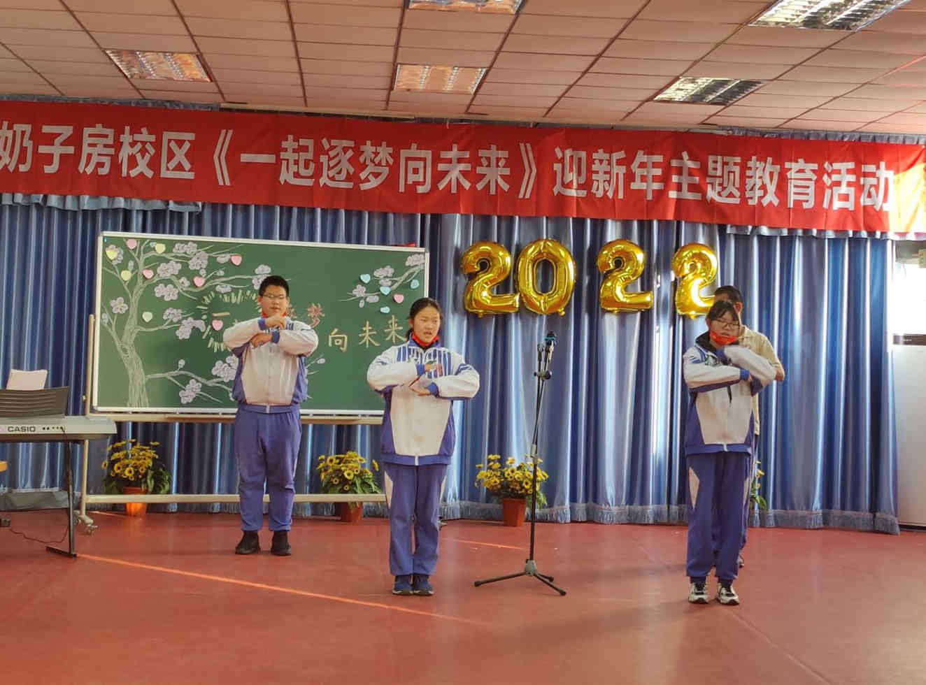 2021年12月31日,陈分奶子房校区全体师生相聚一堂,开展了一场别开生面的迎新年主题教育活动。活动以“一起逐梦向未来”为主题,给大家带来了一场缤彩纷呈的视听盛宴。校区主管校长李侠做了新年贺词。丝丝清韵葫芦丝社团、创意手工社团做了展演和展示,为本学期社团活动画上了圆满的句号。全体师生以朗诵、歌唱、魔术、相声、游戏等多种形式展现个人风采,并共同写下新年目标,携手共进,一起逐梦向未来!