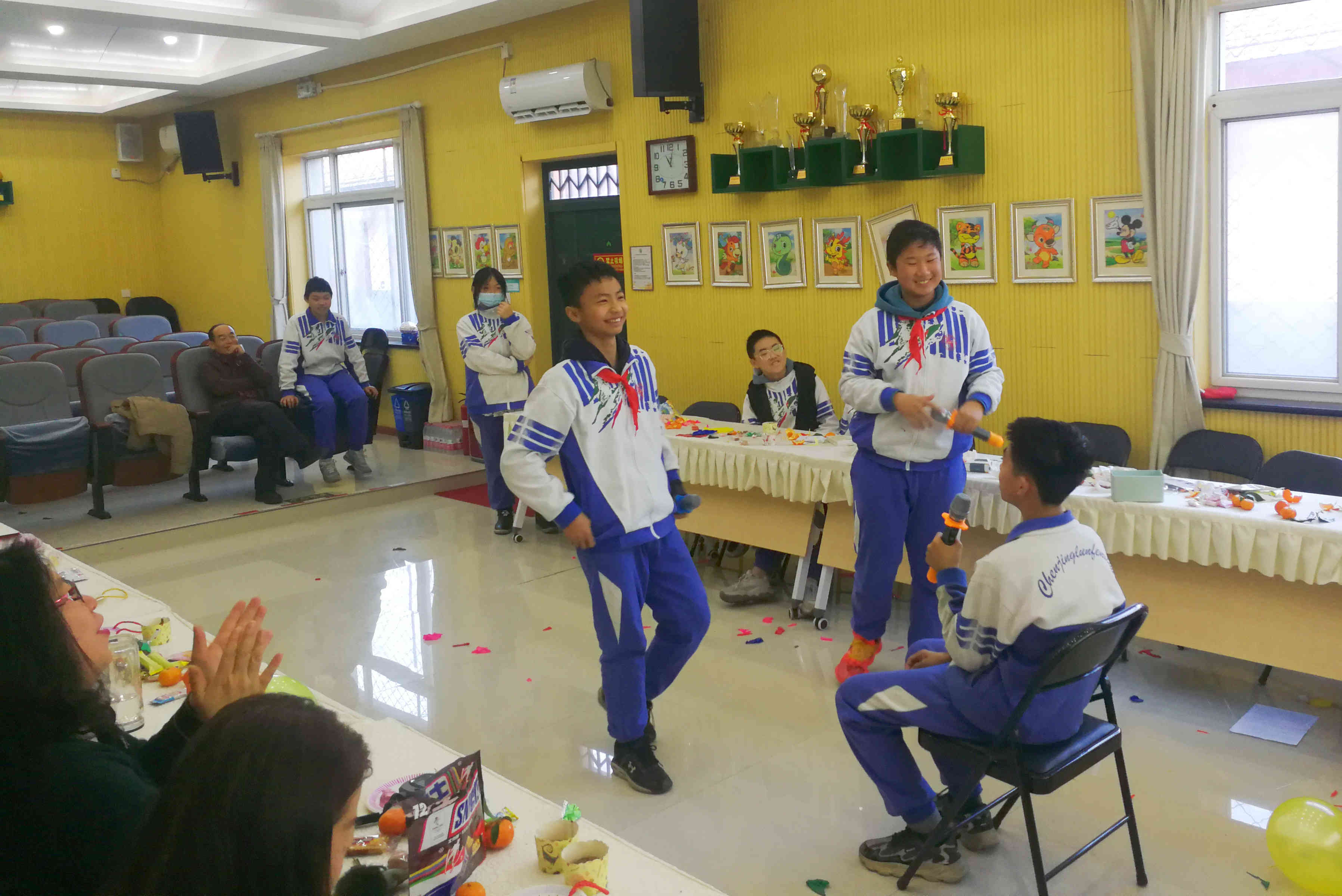 活动中,学生主持人为师生们讲述了元旦来历;赵家晨同学为大家表演了“抖空竹”;音乐老师赵永革献唱了歌曲《我和我的祖国》;卢奕同等三位同学为老师送上了亲手制作的祝福卡;游戏《翻纸牌》《你说我猜》,融入了学科知识和日常积累,又具有PK的竞争性,成功激发起师生们的挑战热情。游戏传递的是乐趣,文化营造的是幸福。校区元旦迎新主题活动,体现了校区全体师生相亲相爱、团结一致,既展示了同学们的才华、特长和个性,也增进了同学情、师生情,更加深师生们对我国优秀传统文化的了解。