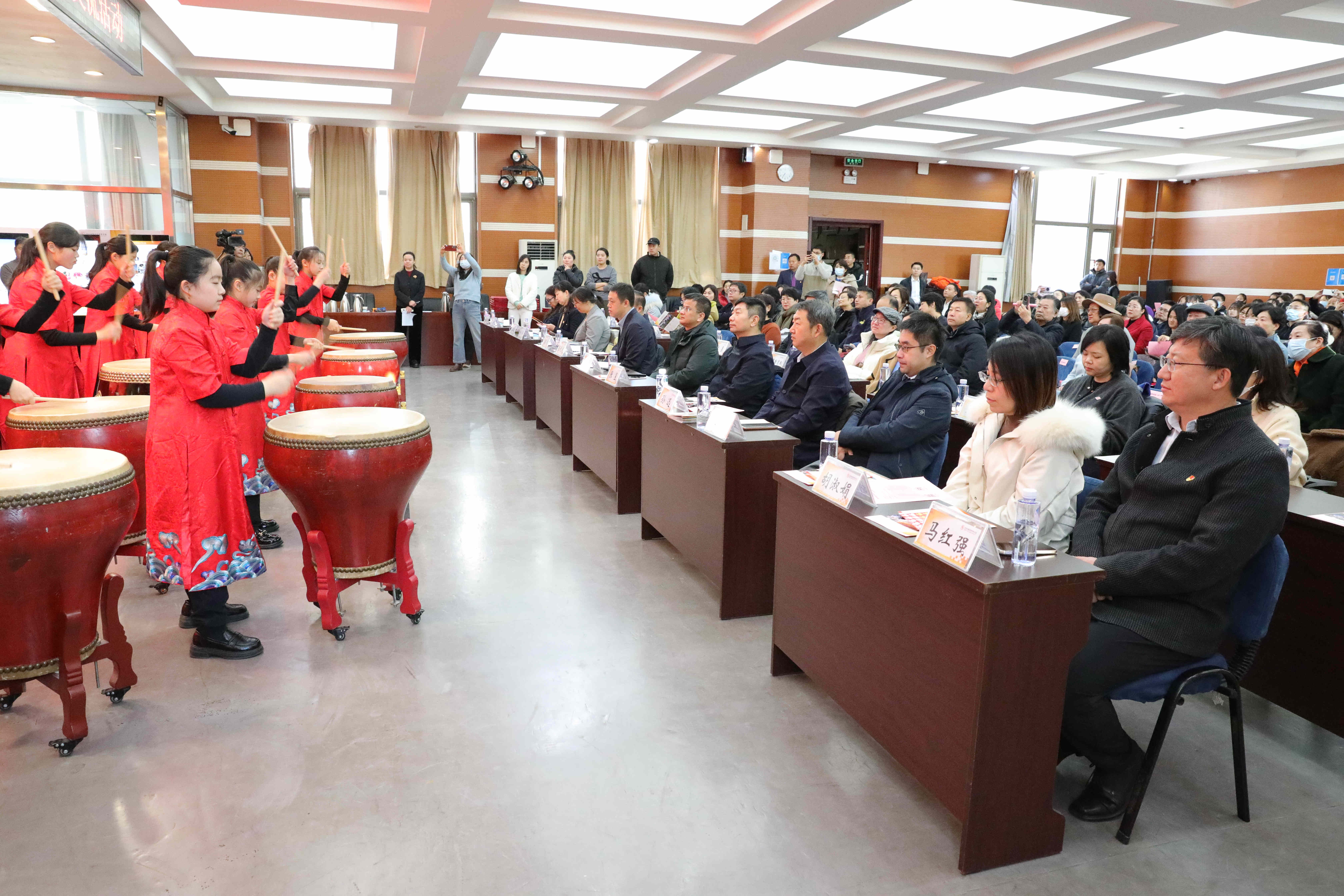 出席活动的领导有北京市教委基教一处副处长张代龙,北京师范大学教育基本理论研究院院长、教授班建武,区关工委常务副主任、区教育关工委主任周炜,区委宣传部(文明办)副部长张昱,区妇联副主席潘小俪,区教委副主任孙迅,东湖街道办事处副主任崔红英,区文明办未成年人科科长胡淑娟,区教委德育科科长王铮,老干部管理科科长张伟,四级调研员关春红,区家庭教育指导中心主任张勇等领导;朝阳区各学校德育干部,家校社共育工作获奖代表,北京市陈经纶中学分校校长马红强、党委书记魏淑娟等校领导、师生代表以及关心学校发展的各界代表出席活动,共同见证区域协同育人创新实践的重要时刻。在《鼓舞 匠心》激昂的鼓点声中,活动正式拉开帷幕!