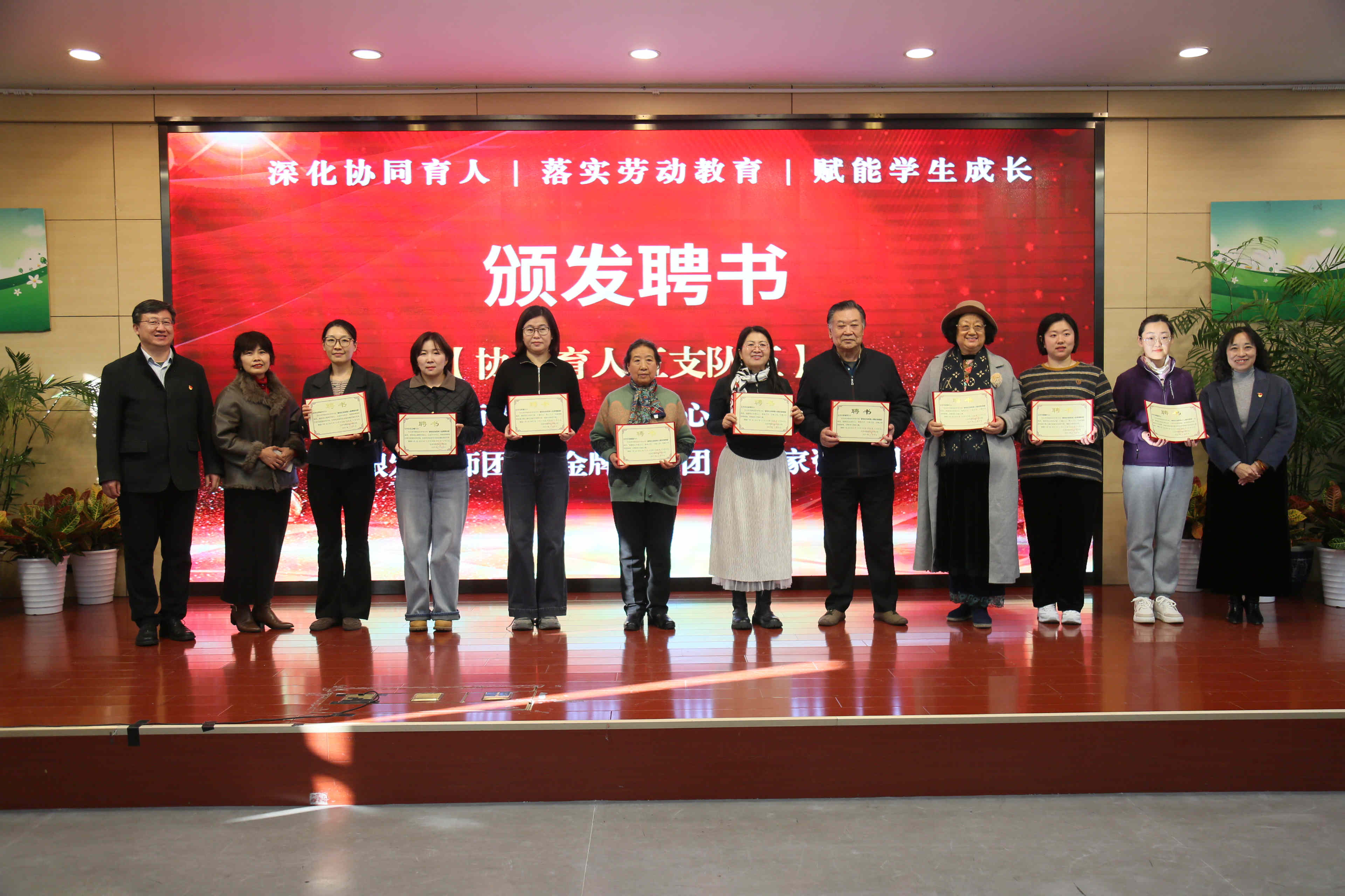 北京市第三中级人民法院等21家“教联体成员单位”郑重接受共建书;学校“名师领航团”“阳光心理护航团”“银发导师团”“金牌家长团”“专家咨询团”五支专业队伍获颁聘书,共同构成北京市陈经纶中学分校“五位一体”的协同育人生态体系。